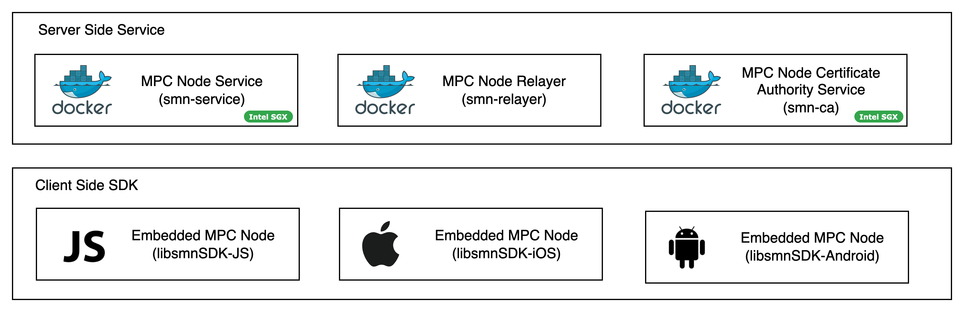 - MPC Node Service 内包含基于可信计算技术(Intel SGX)实现的应用,用于增强对服务端敏感数据的保护,如私钥分片的生成和使用过程安全,以及私钥分片敏感数据的存储安全