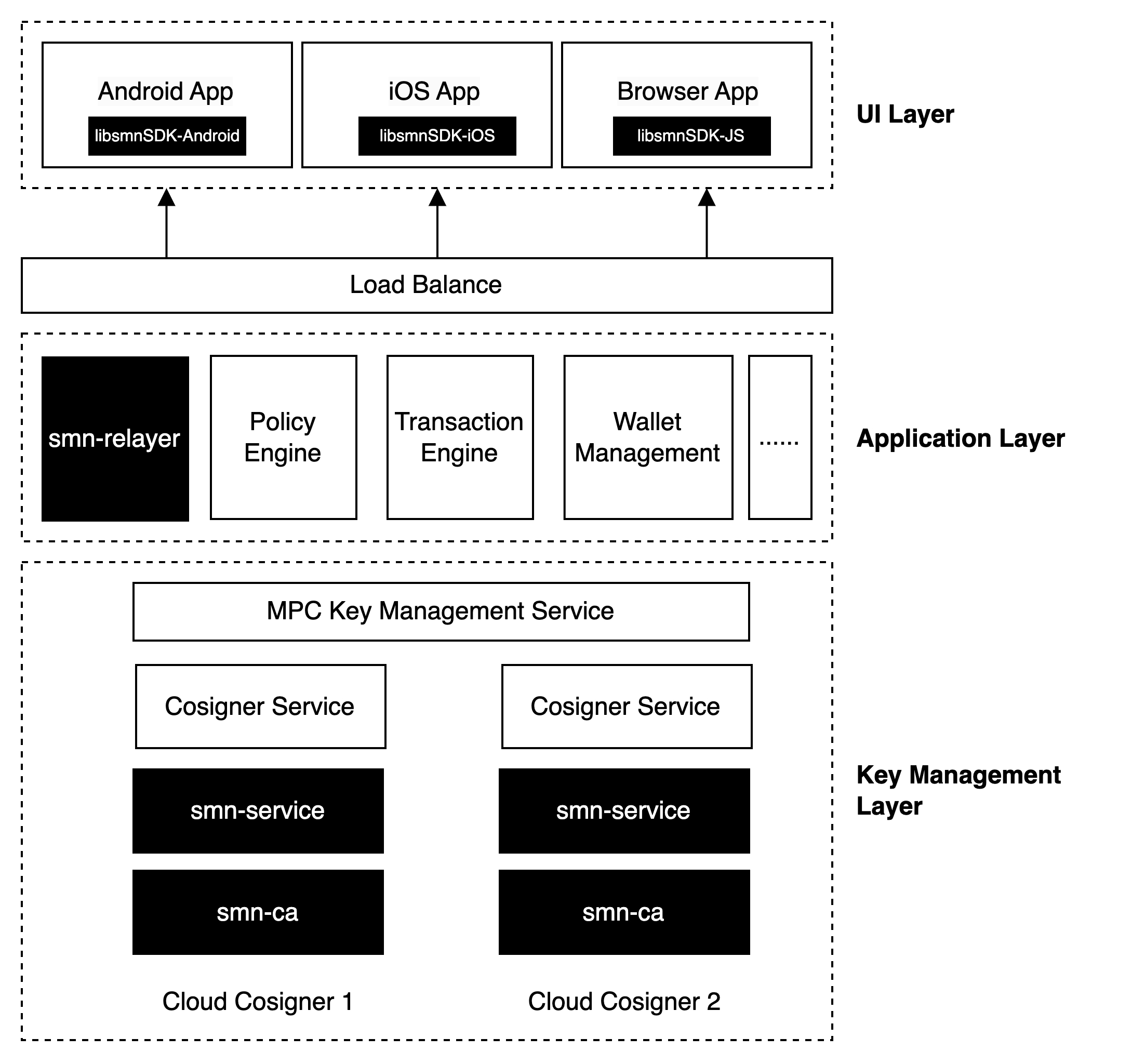 基于 SMN 产品套件您可以轻松构建类似 Safeheron 的自托管平台,资产控制权完全由客户控制。