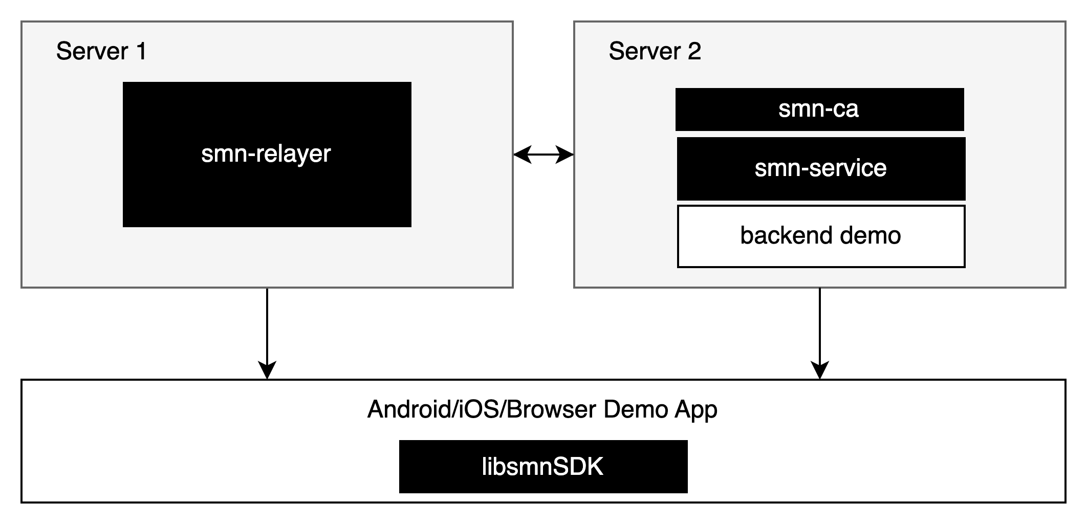 开发者需要先按照部署文档部署完成 smn-relayer、smn-ca 和 smn-service,然后将 backend demo 部署到和 smn-service 同一台服务器中。