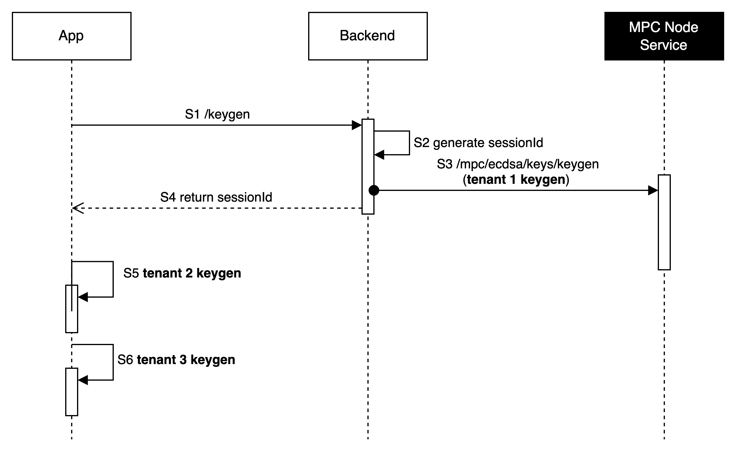 (S3)Backend 生成 sessionId 后使用该 sessionId 异步调用 MPC Node Service keygen 接口(服务端租户 1 keygen 接口)