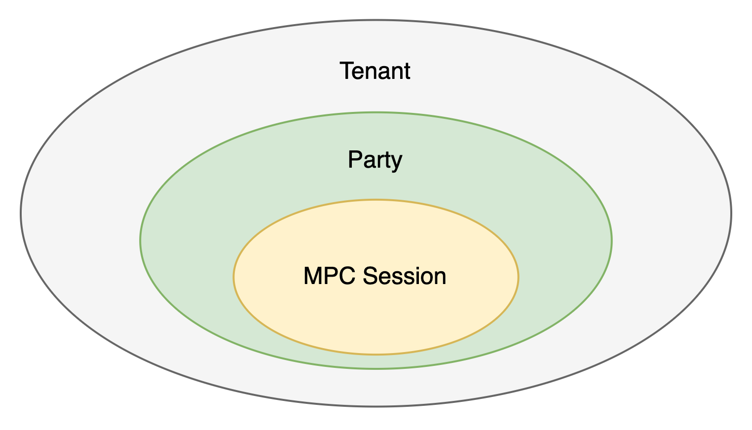 Party 的概念与 Tenant 类似,一些场景下概念通用。可以认为每个 Tenant 有一个作为 MPC 参与方的角色属性,这个角色属性通过 Tenant 的 Party ID 配置体现。